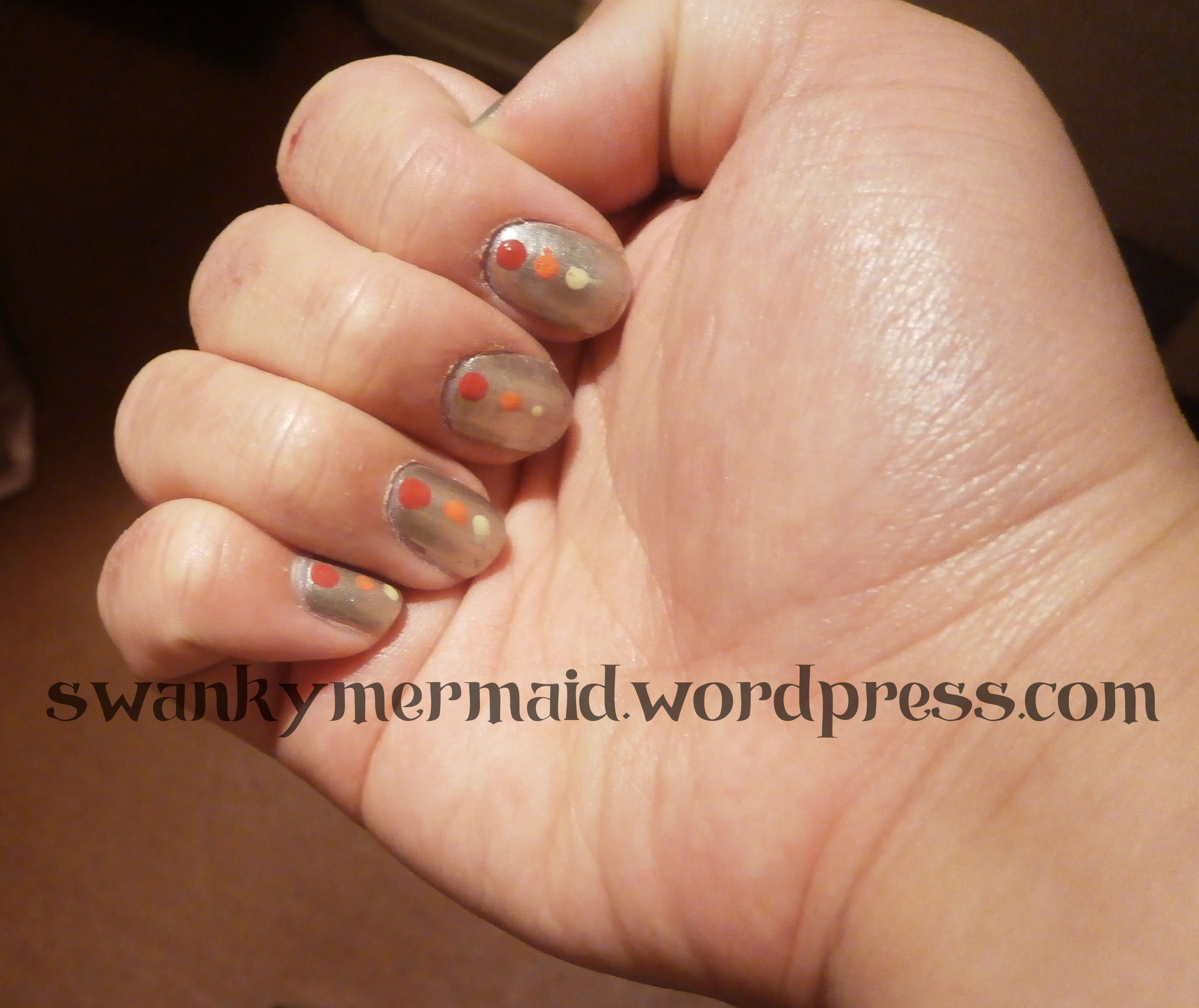 2. Take your dotting tools or the backs of paintbrushes/ toothpick/whatever you have available and start from the cuticle, up.
