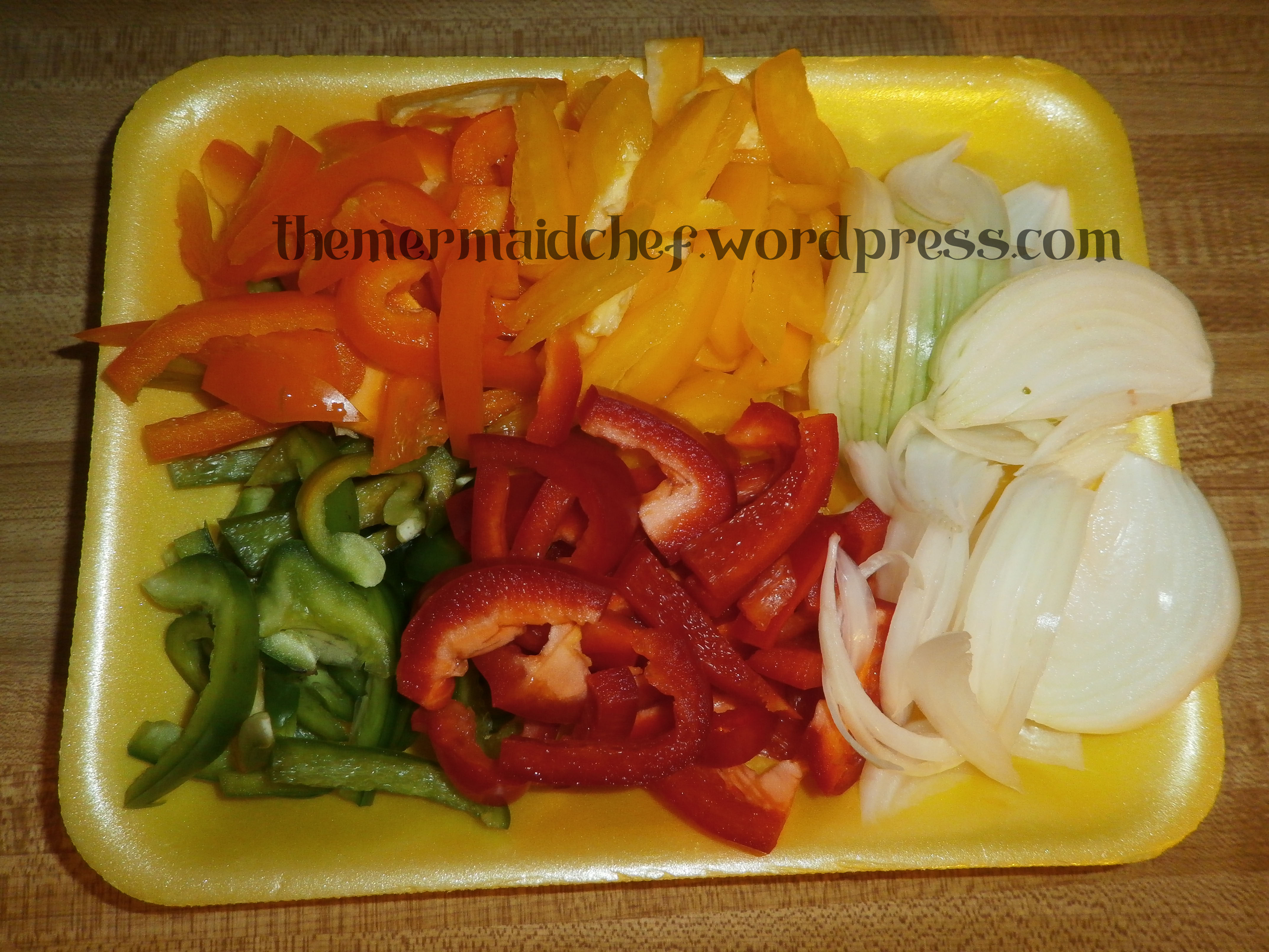 1. Cut your onions and peppers into slices.