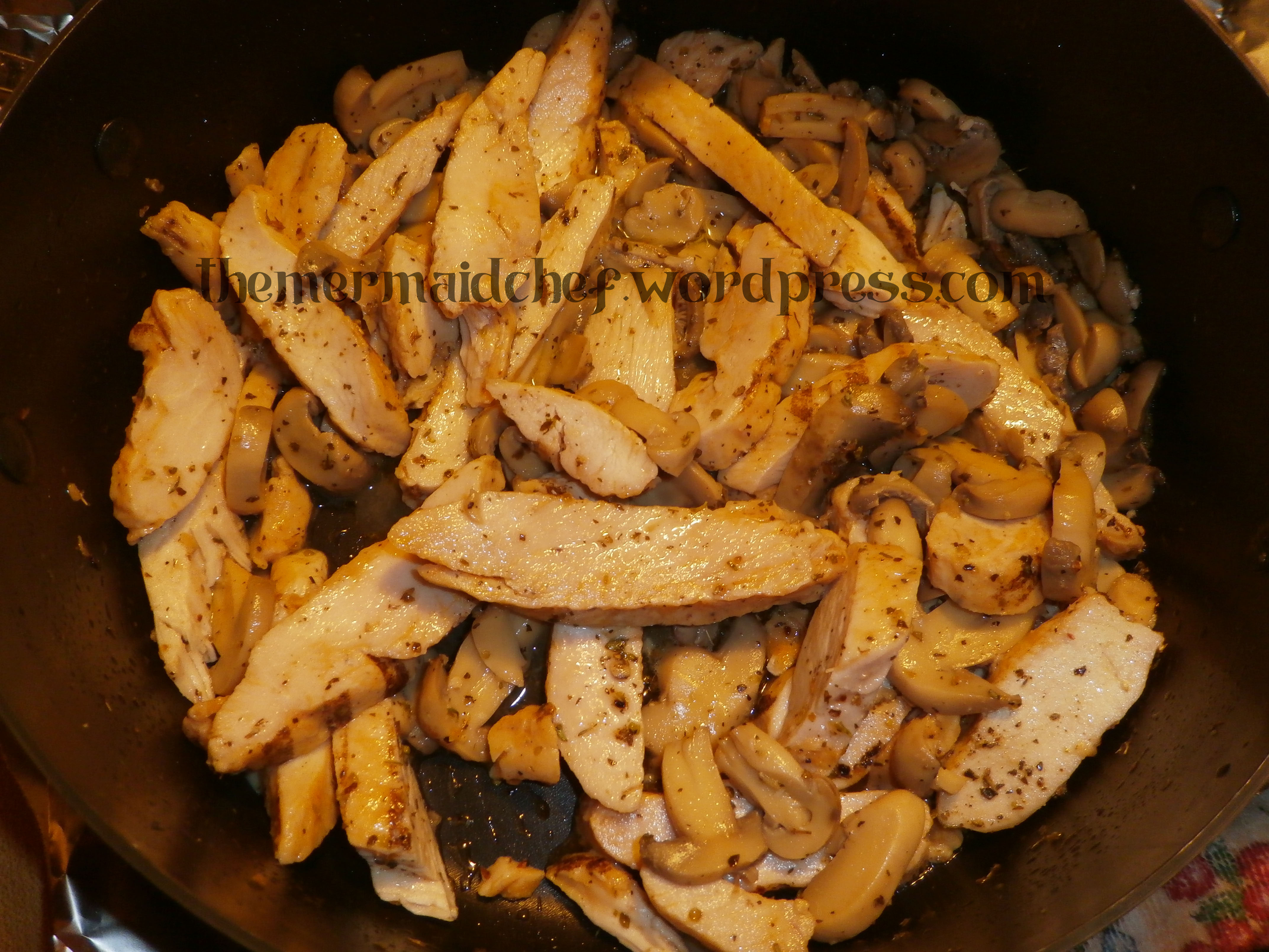 2. Heat up your chicken and place your spices and seasonings on the chicken.
