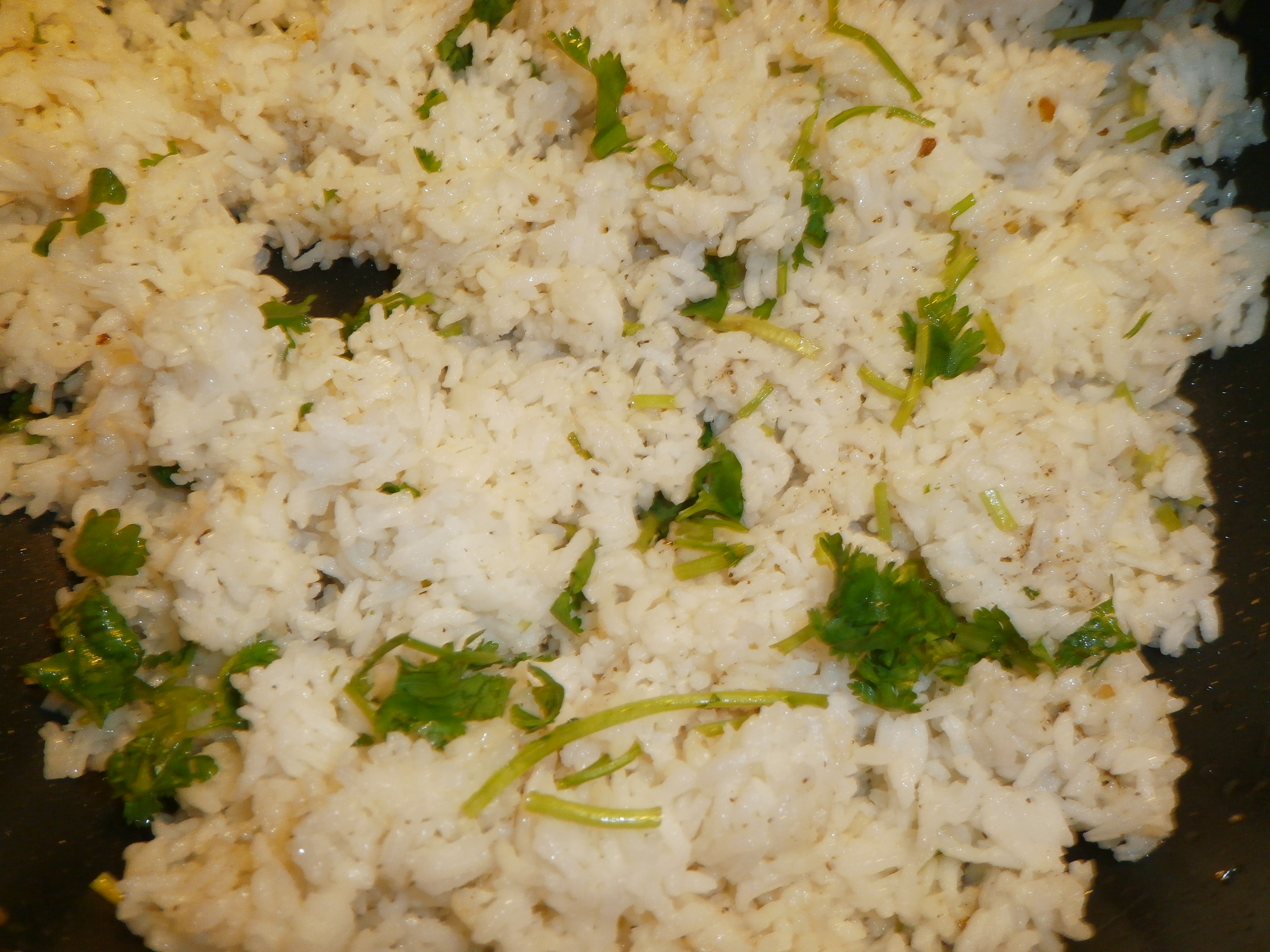 4. After squeezing your lime, place cooked rice into the pot and add lime juice and cilantro. Mix both in and taste, add seasonings as needed but be reminded that the chicken is already packed with a lot of flavor.