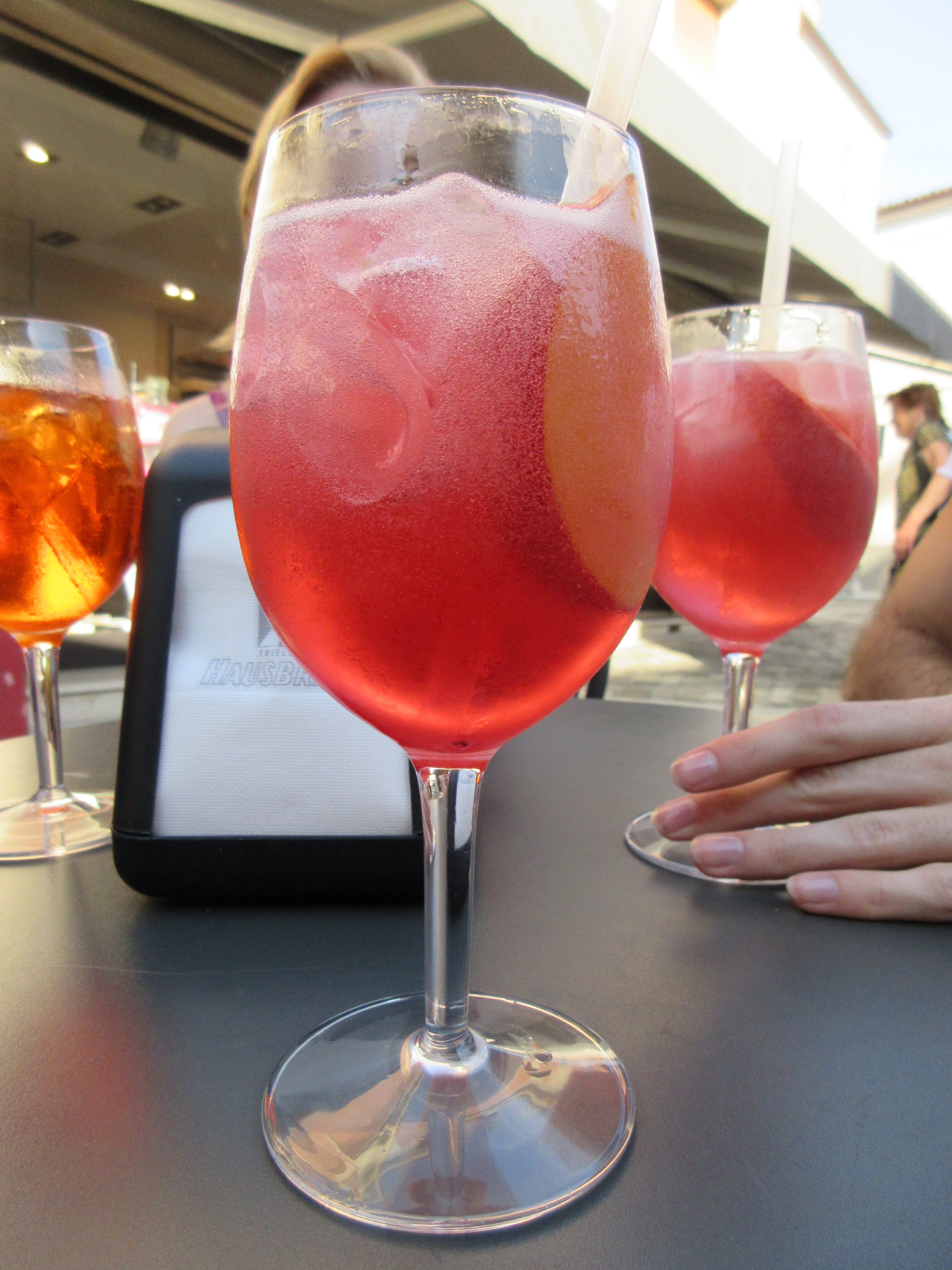 To be honest, my second week was filled with sewing my heart away and fittings for the three shows I was working on. I did, however, climb a mountain! Below, you can see me at the top, I am definitely feeling good after walking up for about two hours, including some amateur rock climbing with some ropes and stuff. This was all self-guided so I went with some friends who had gone last year.The fancy drink you see below the picture of my glowing face is a Hugo Rosa Spritz. This is really nice if you don’t like the taste of Aperol. So good!